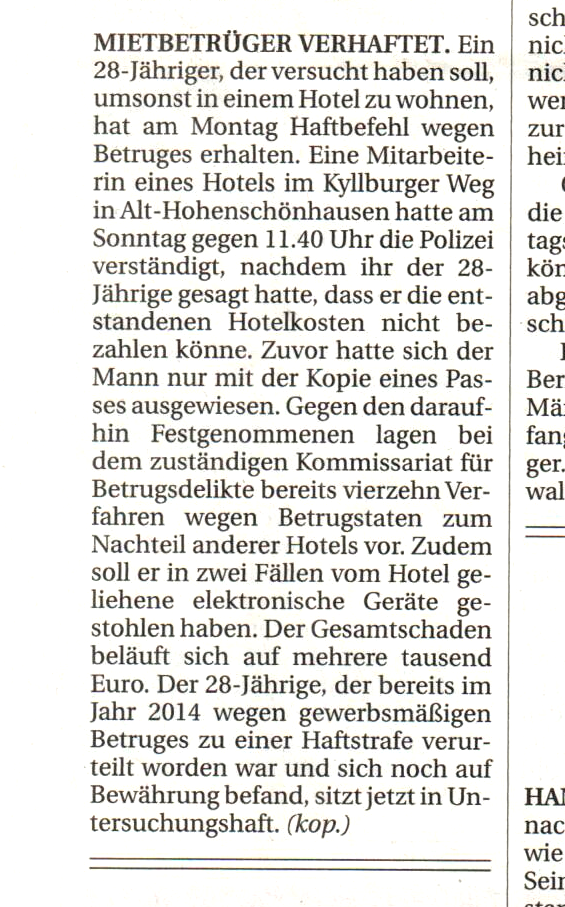 Hm, da wollte einer ganz schlau sein. Hat wohl nicht geklappt. Jetzt zahlt Vater Staat die Übernachtung: